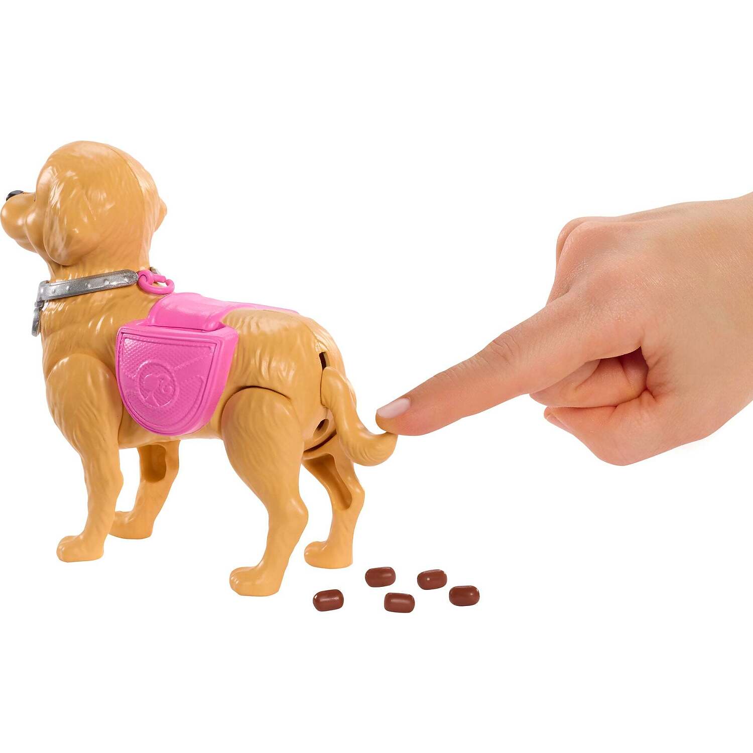 Wind the knob and pull the leash to watch the puppy really walk, then tap its tail for a potty break. Kids can clean up using the pooper scooper and bin that fit perfectly in Barbie’s hands.