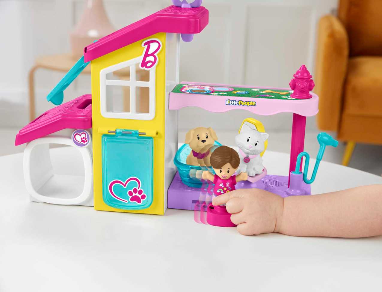 - Barbie®-themed Little People® pet care playset with 2 floors of play for toddler-friendly pretend play!