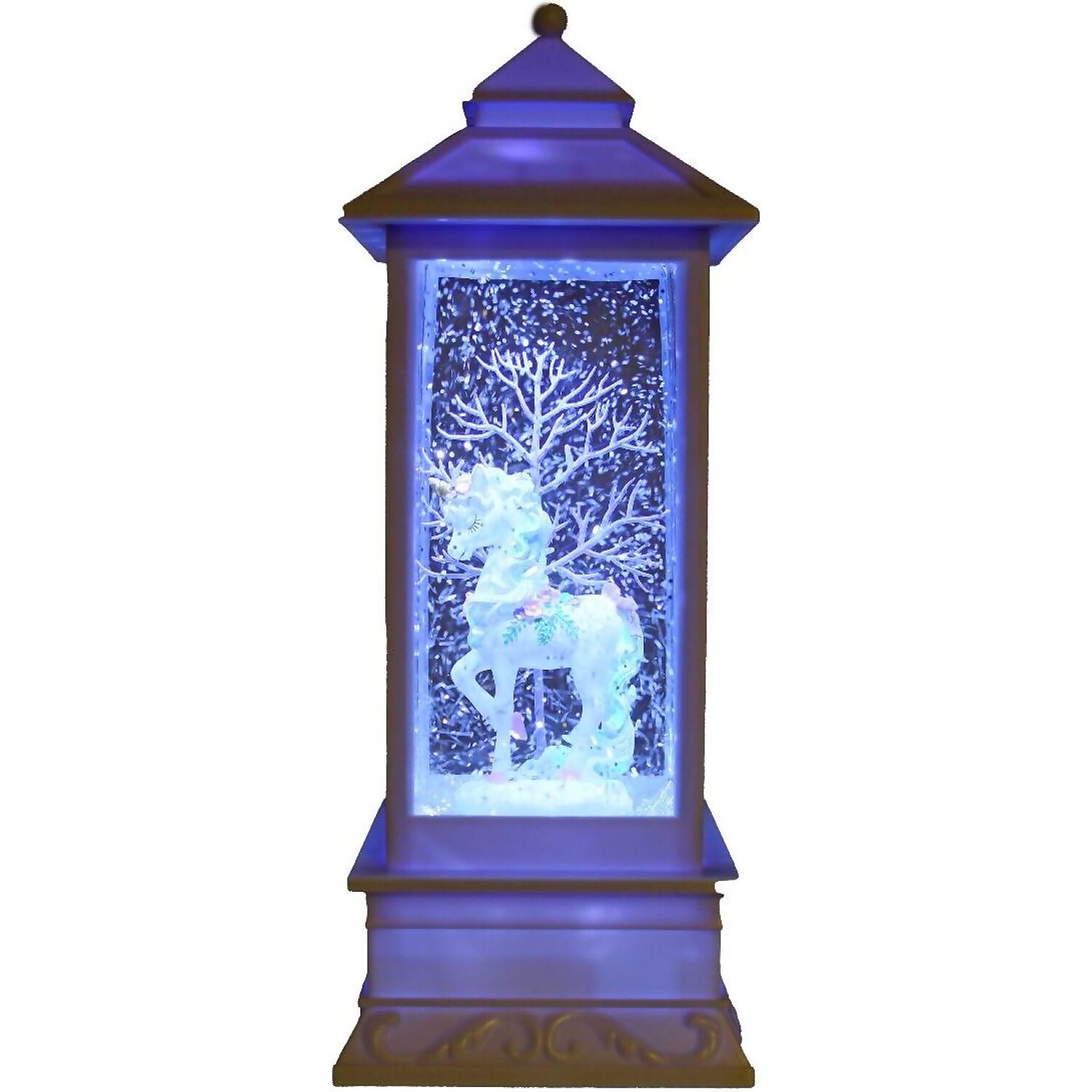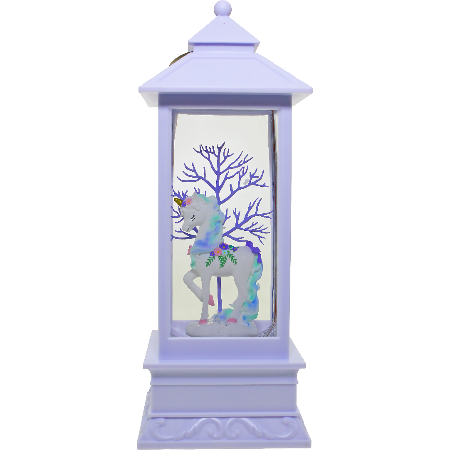 This lovely lantern brings a soft touch of magic to any room. It shows a gentle unicorn standing beside a bright purple tree, creating a calm and dreamy scene from the Cotton Candy fantasy range. Warm light shines through the lantern and makes the glitter inside swirl in a slow and soothing way.