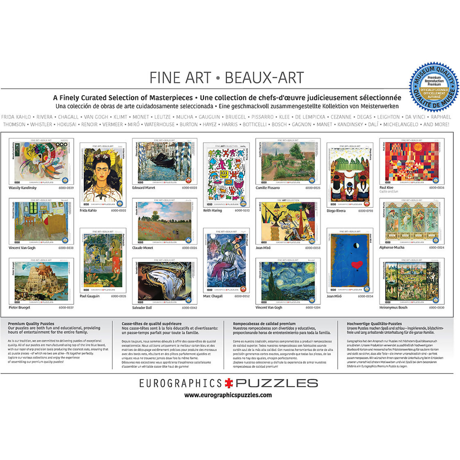 EuroGraphics Waterlilies by Claude Monet 1000-Piece Puzzle. Box size: 10′ x 14′ x 2.37′. Finished Puzzle Size: 19.25′ x 26.5′. The image depicts the founder of impressionism Monet’s flower garden at Giverny which became the main focus of his artistic production during the last 30 years of his life. Strong high-quality puzzle pieces. Made from recycled board and printed with vegetable based ink. This superior quality puzzle will delight and educate all at the same time.