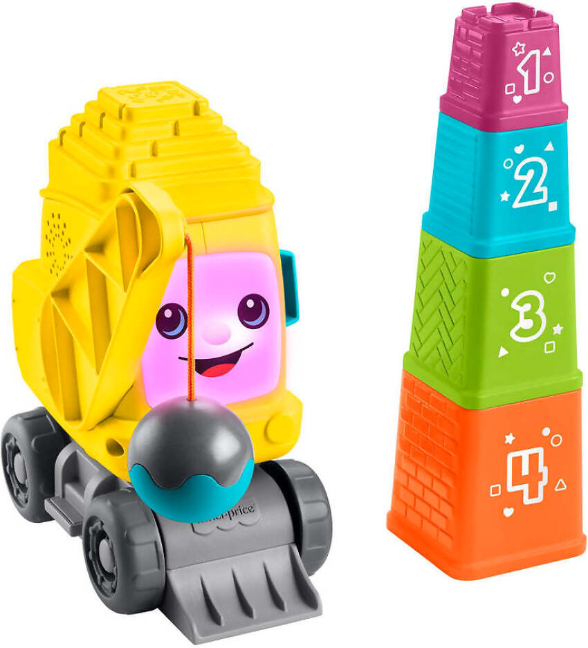The fun will stack up for babies and toddlers with the Count & Stack Crane™ construction toy from Fisher-Price®. This push-along crane recognizes each of the 4 numbered blocks and lights up with fun sounds and phrases when they’re stacked or nested on top to teach numbers, counting, colors and shapes.