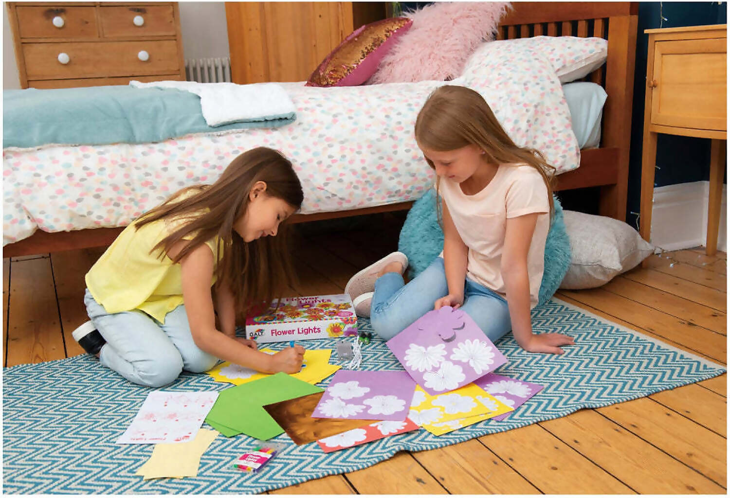 The Galt – Flower Lights create and decorate Led lights is a fantastic craft kit that allows children to create an amazing string of 10 flower lights to decorate their room. Children can customise their look by colouring in the patterned flowers, then layering up with coloured and metallic petals around each LED light to create a dazzling display. This product comes with assorted sheets of pre-cut paper flowers, 2 x AA batteries, 6 mini fibre pens, sticky circles and a guide to help children create their own unique designs.