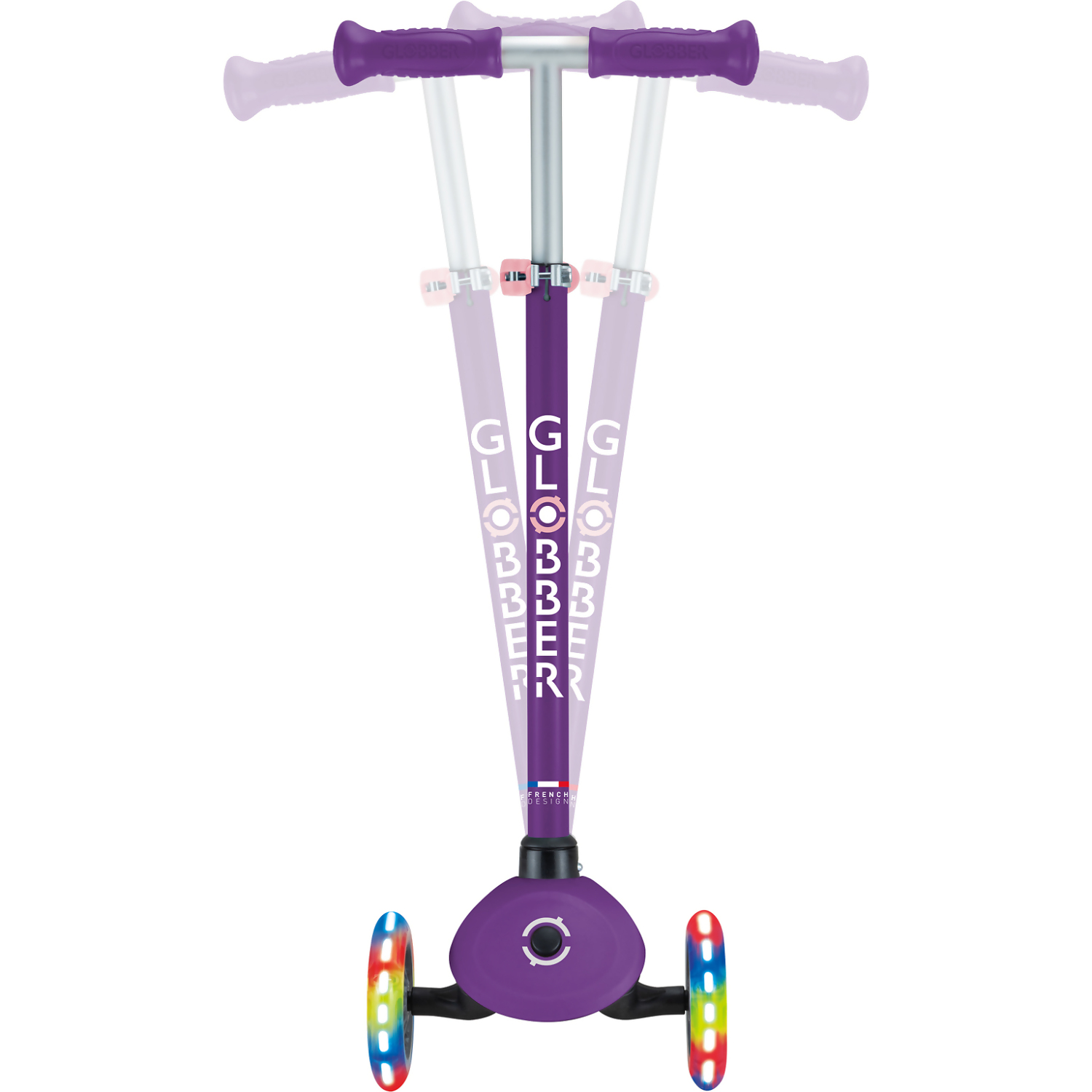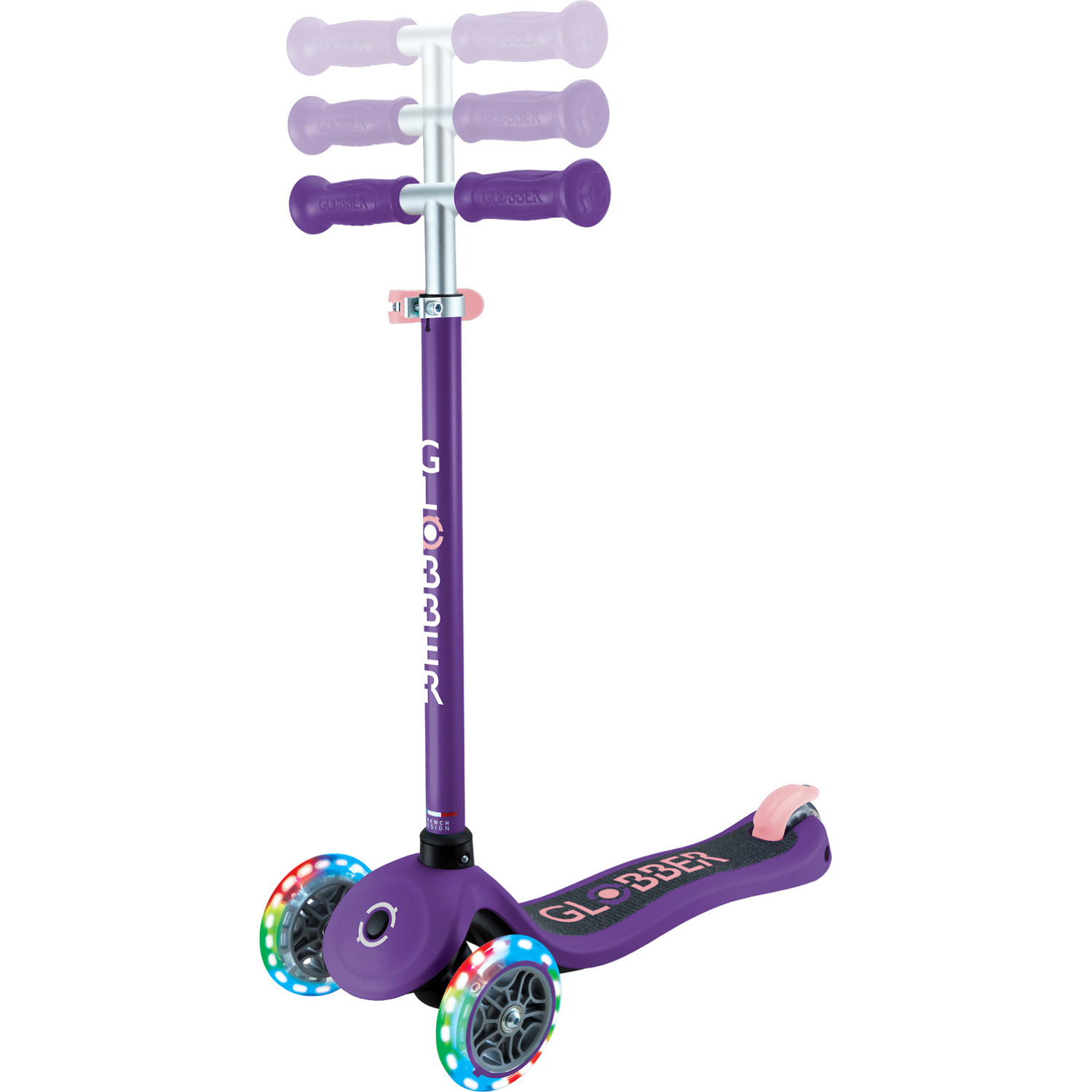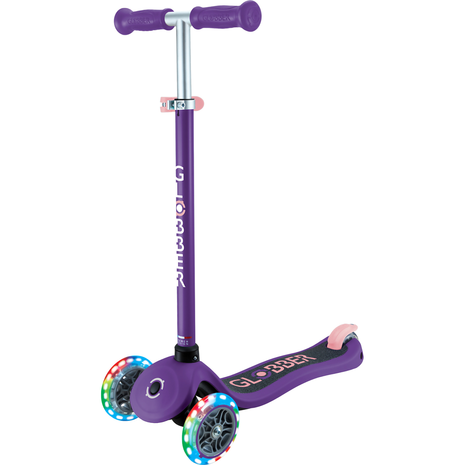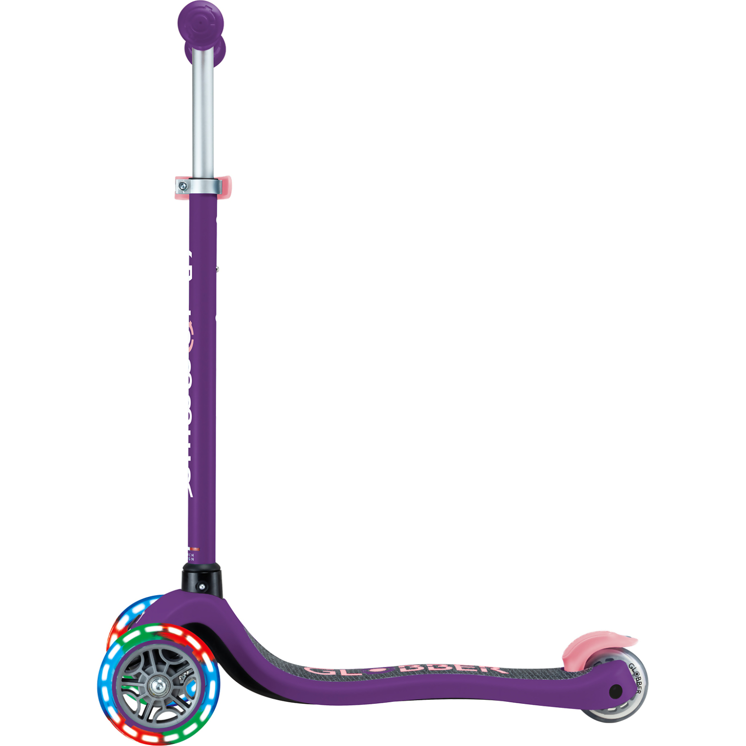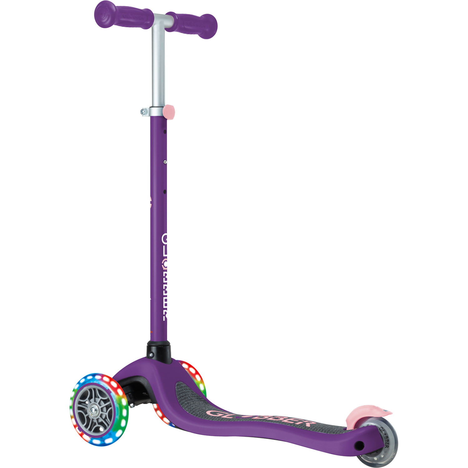 Globber Primo Lights Kids 3 Wheeled Push Scooter – Purple/ Pastel Pink