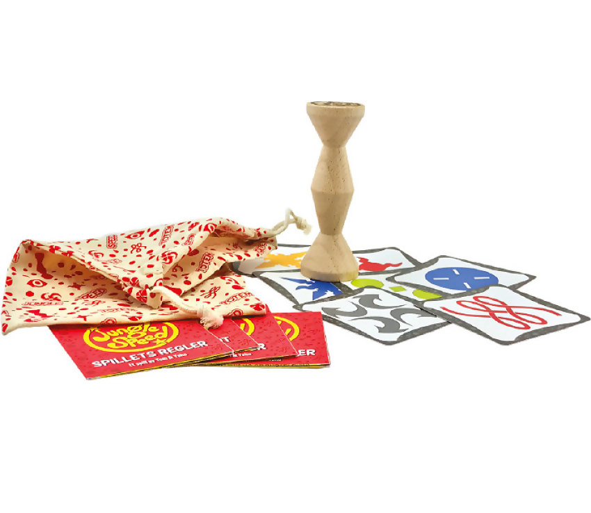 Jungle Speed is a card game created by the toy brand Asmodee. The game is designed for players to rely on their keen sense of observation and quick reflexes. It requires a steady hand, which can be hard to maintain during the many fits of maniacal laughter.