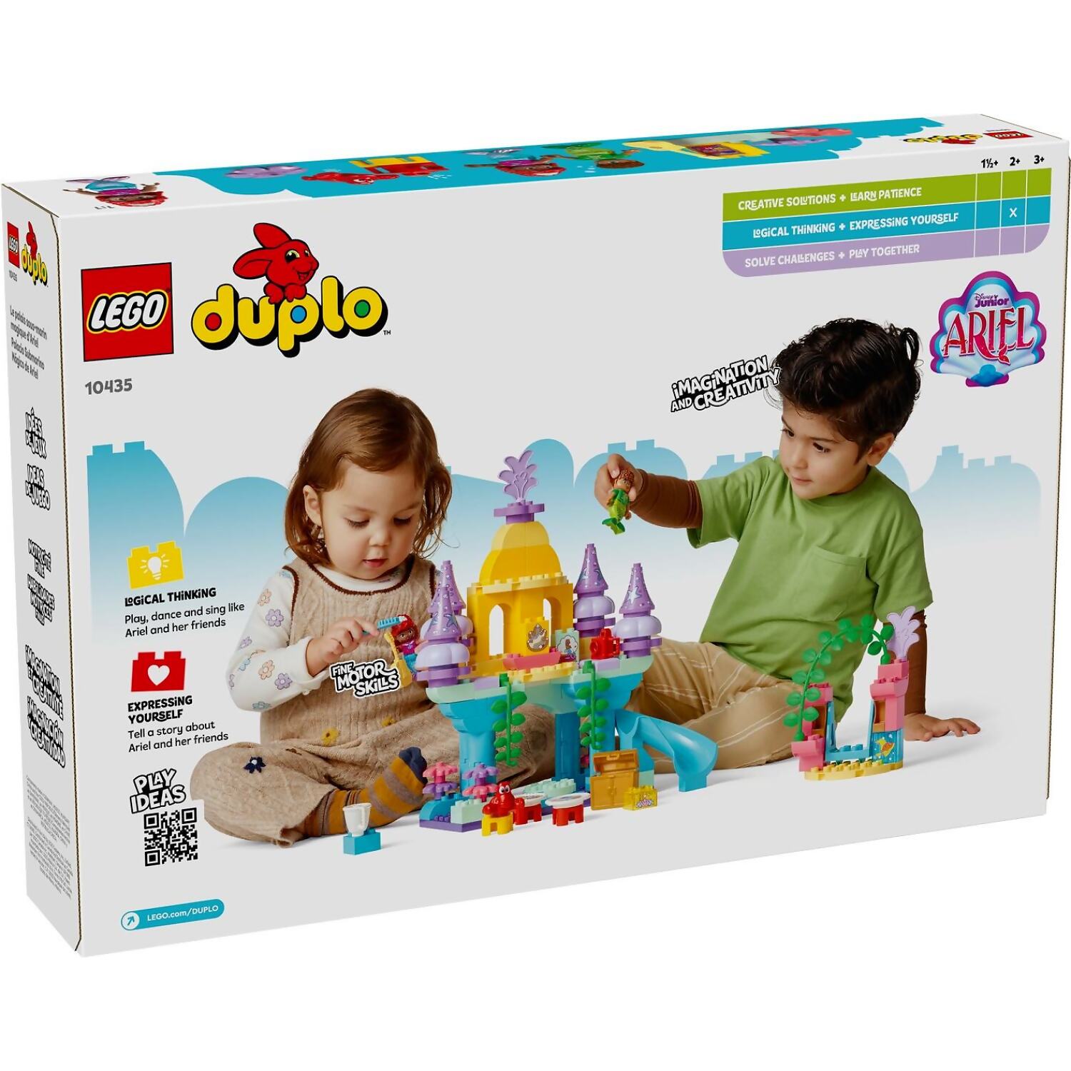 - 3 familiar characters – Preschoolers explore the magical features of the buildable toy castle from the Disney Junior Ariel TV show with LEGO® DUPLO® figures Ariel, Fernie and Sebastian