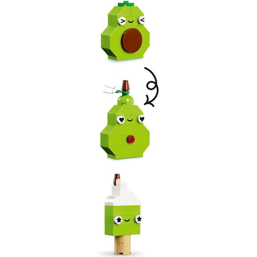 - Endless creativity – Kids build a cupcake, ice cream, avocado and taco toy, rebuild into a cake with sprinkles, bubble-tea drink, pear and a panini, then launch into unlimited free-building fun