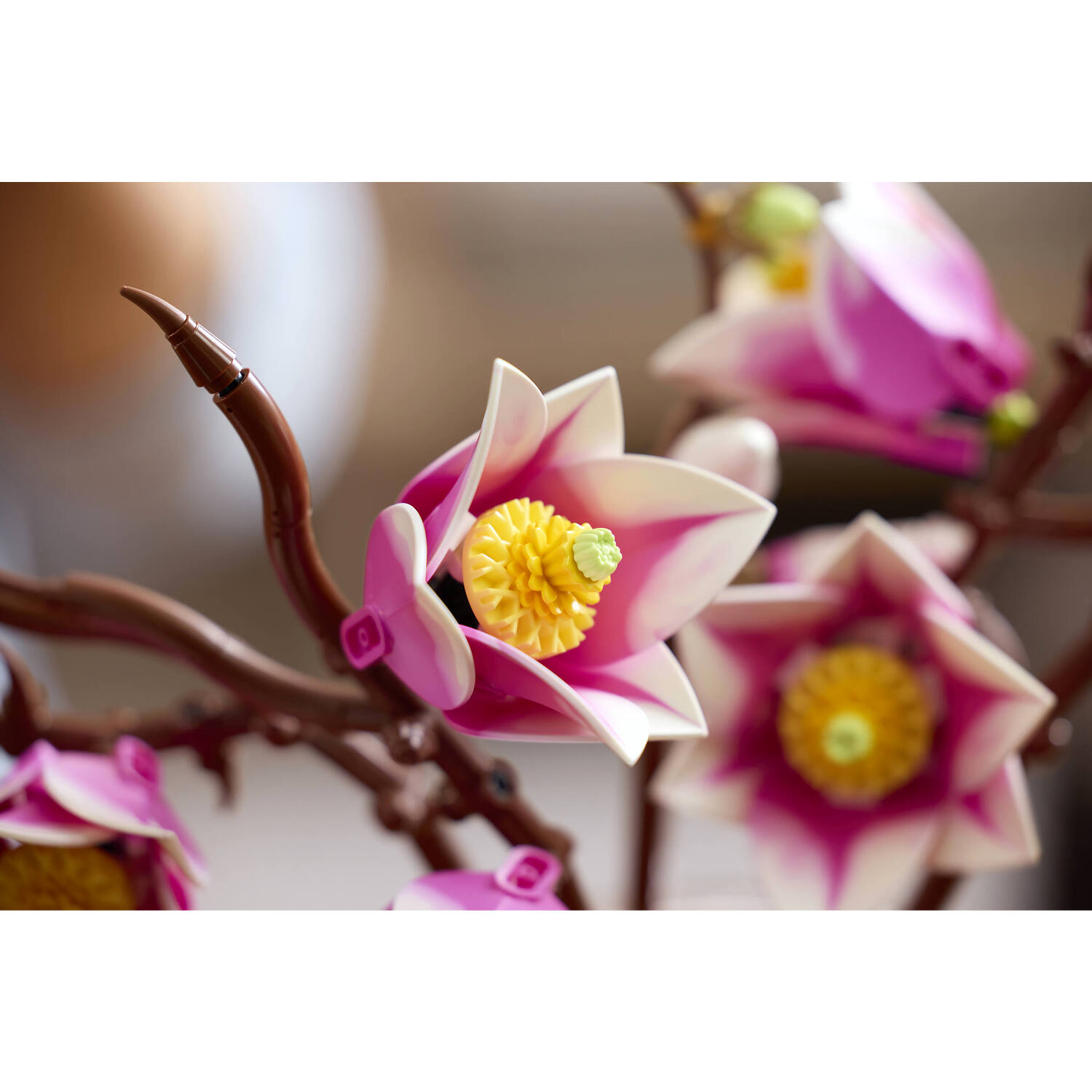 - LEGO® MAGNOLIAS – The building kit includes 5 magnolia branches, with 2 of the branches showing the full development of the flower, from the tiny bud to the open petals