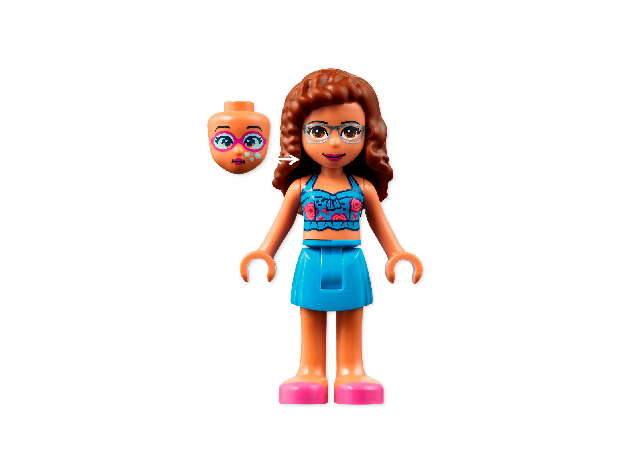 - Authentic accessories – Includes realistic elements for creative summer fun play. There are lots of aqua toys and a life vest and sunscreen. Olivia’s head can be changed to a version wearing goggles