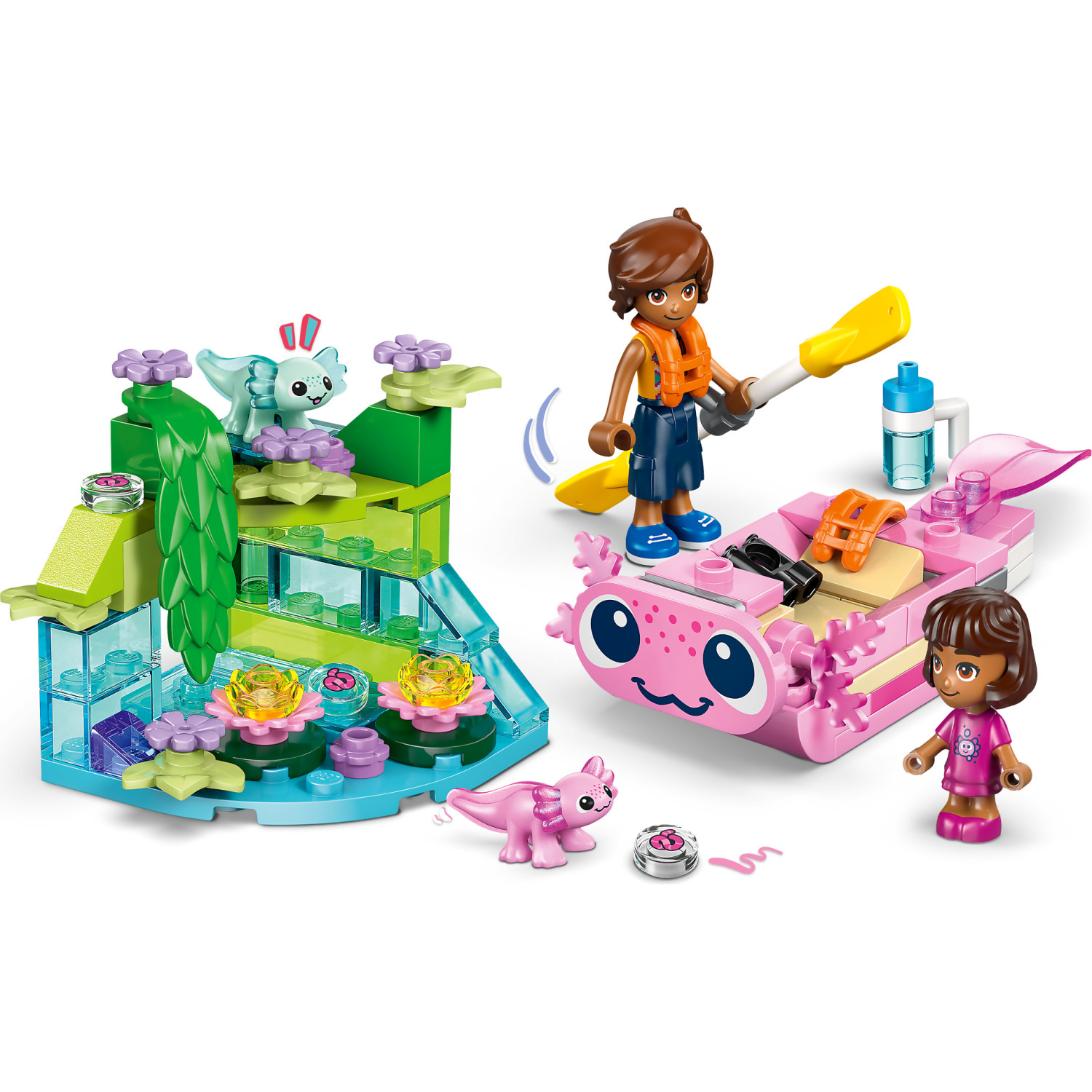 - AXOLOTL TOY BUILDING SET – This kids’ LEGO® Friends Axolotl Adventure Boat (42681) includes a mini boat, 2 characters and 2 mini axolotl toys, launching fun play for girls and boys ages 5 years and up