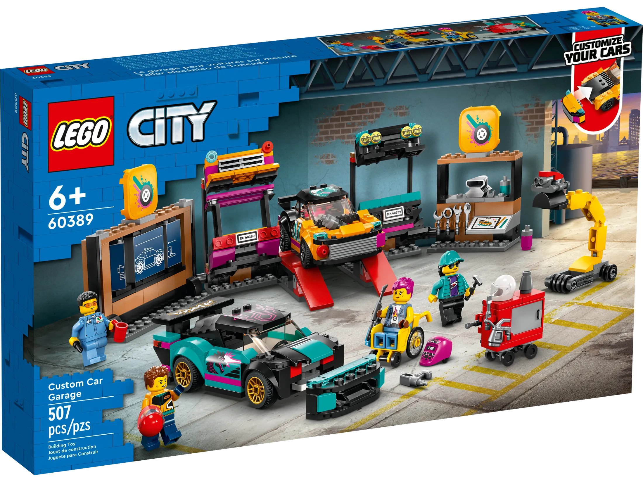 - Customizing cars is kids’ play – This multi-feature LEGO® City Custom Car Garage (60389) is packed with features that will shift imaginative play up a gear
