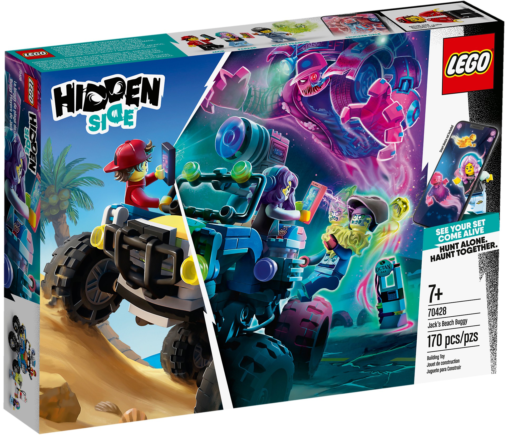 - Whats in the box? This LEGO augmented reality playset includes a digitally interactive Hidden Side beach buggy with cool features and functions, plus Jack, Parker and possessed mechanic Scott Francis minifigures.