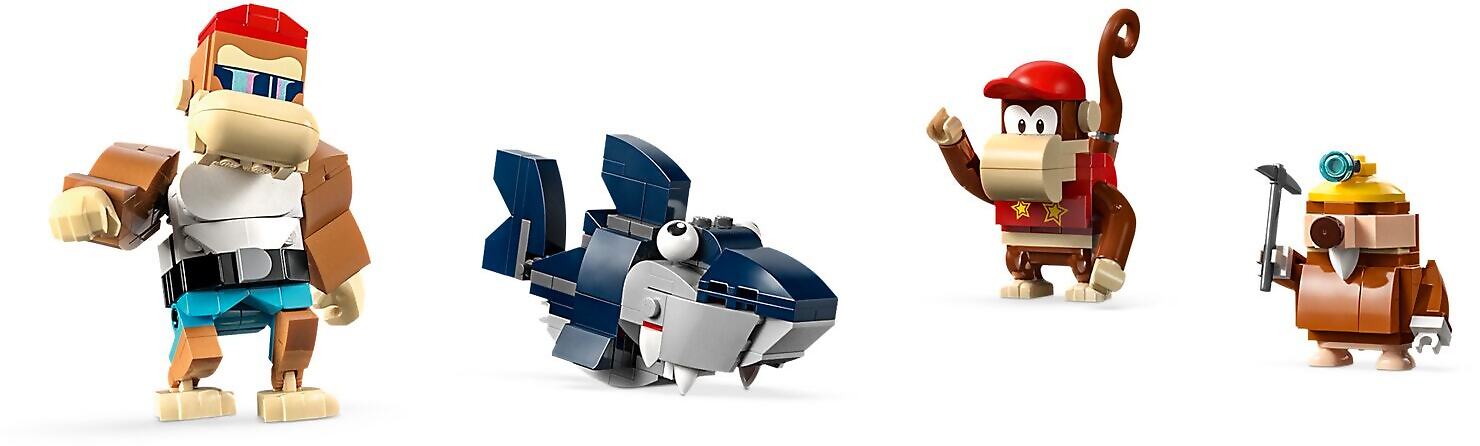 - 4 LEGO® Super Mario™ figures from the Donkey Kong™ world – Funky Kong and Diddy Kong, plus a Snaggles to flip out of the way and a Mole Miner to defeat
