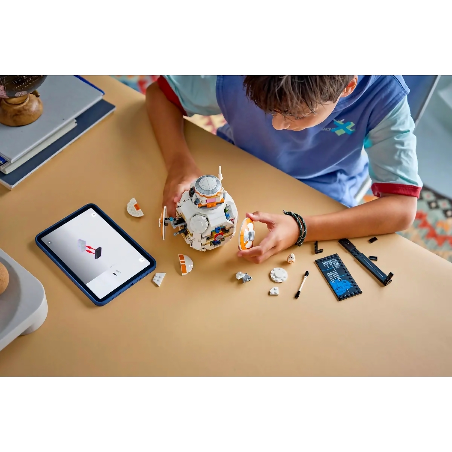 - BB-8 LEGO® FIGURE – Display the main buildable toy model with the BB-8 info plaque and standard-sized BB-8 LEGO figure