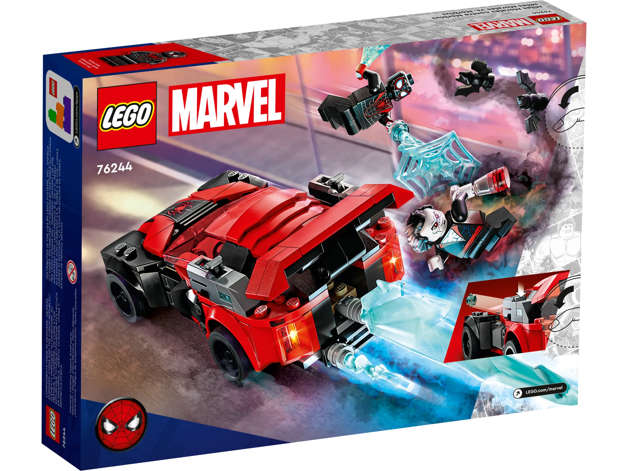 - High-powered Spidey car – LEGO® Marvel Miles Morales vs. Morbius (76244) puts supercharged Super Hero fun into the hands of young Spider-Man fans