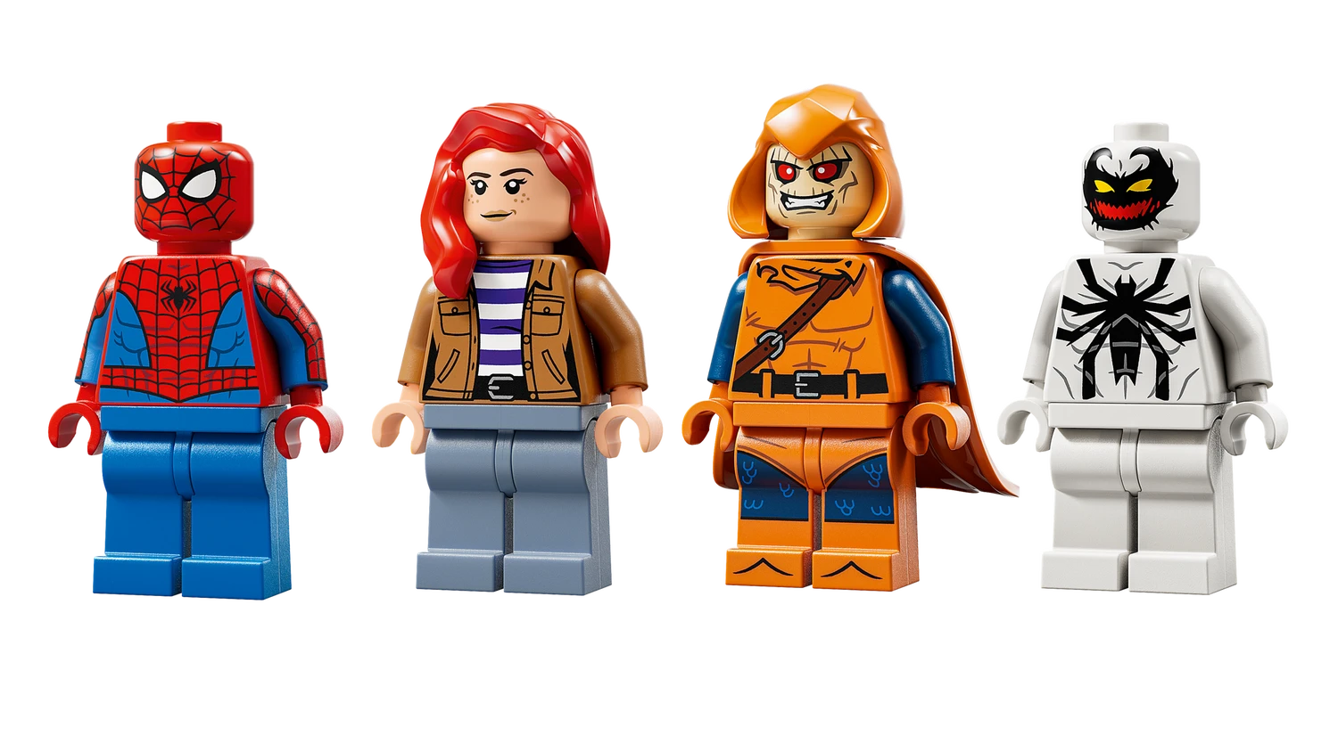 - LEGO® ǀ Marvel minifigures – The buildable set features Hobgoblin on his glider with pumpkin bombs, Spider-Man and Anti-Venom blasting webs and Mary Jane with a large, jointed spider robot