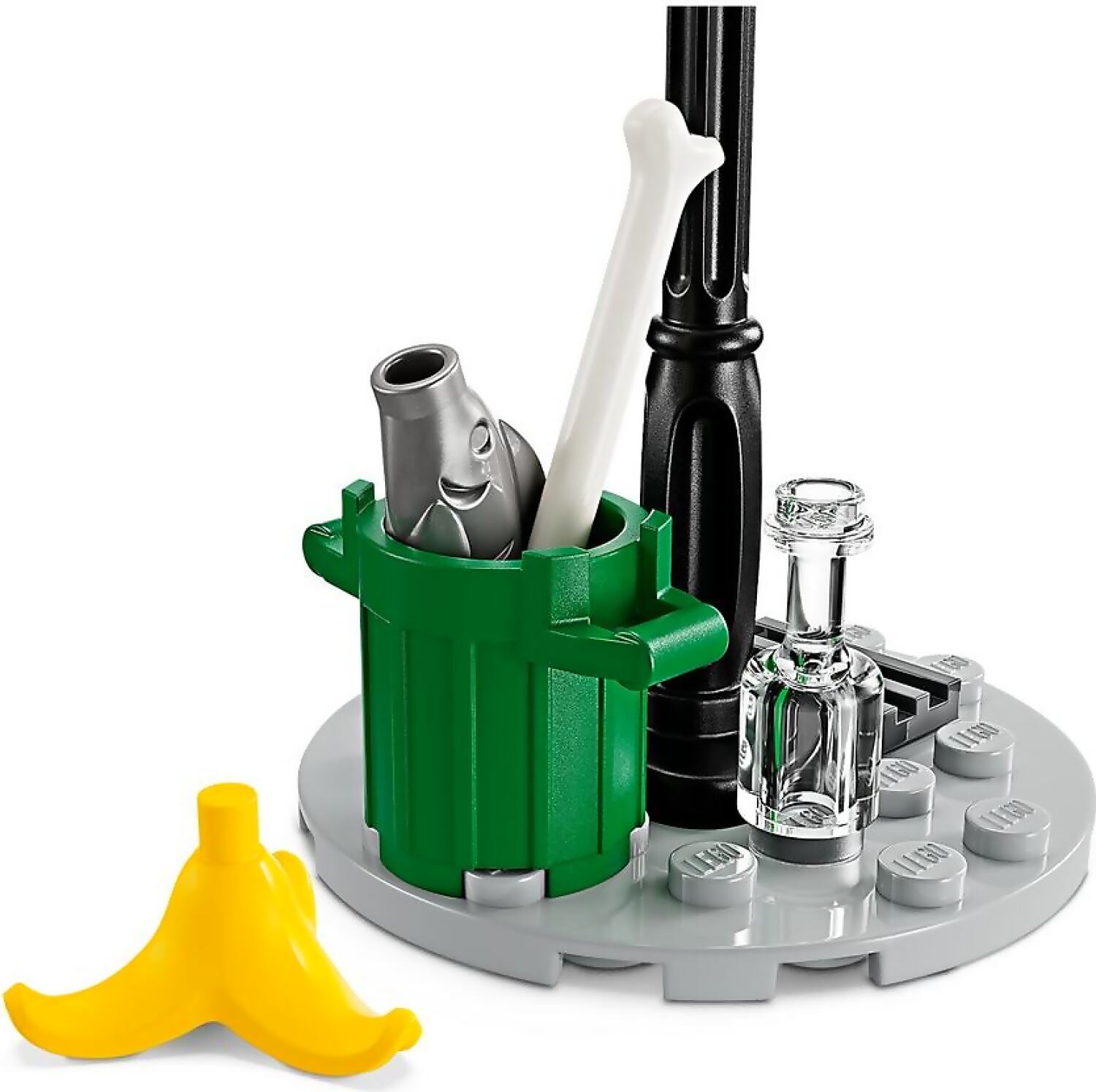 - Inspiring accessories – Fun role-play accessories included in the set are a trash can, bottle, fish, bone, banana peel and dynamite