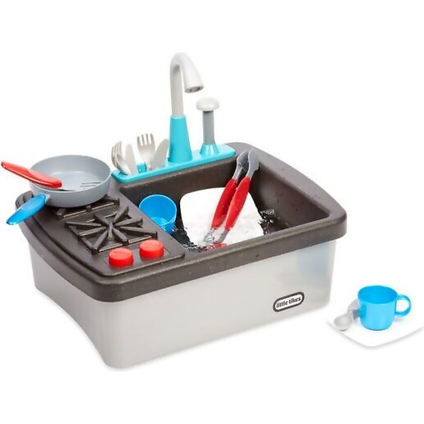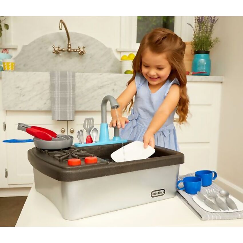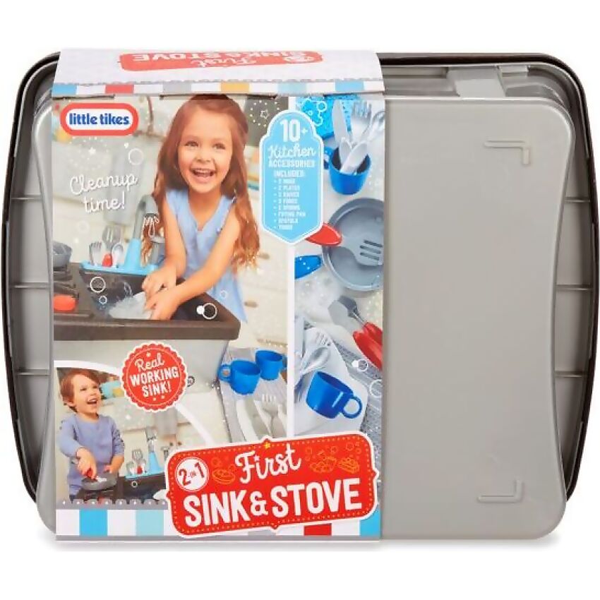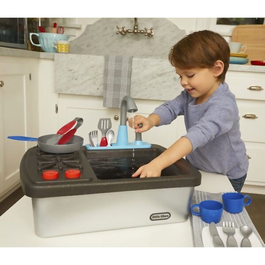Little ones can pretend to cook and wash dishes just like the grown-ups with the realistic Little Tikes® First Sink & Stove.
