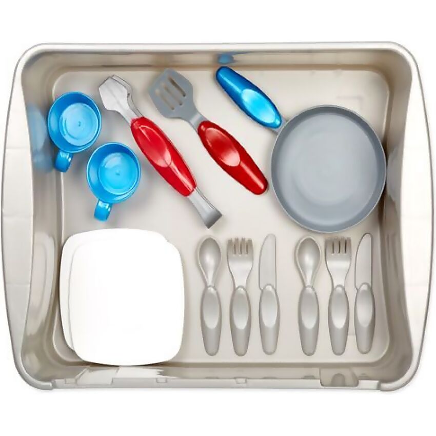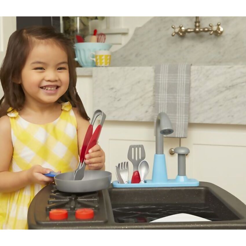 The First Sink & Stove fits all 13 included accessories for easy cleanup too. Encourage kids to engage in imaginative pretend play with the First Sink & Stove by Little Tikes®!
