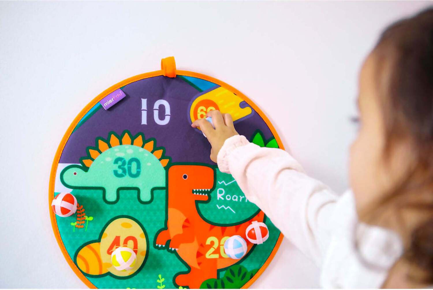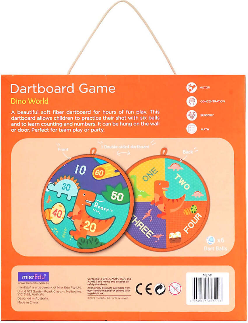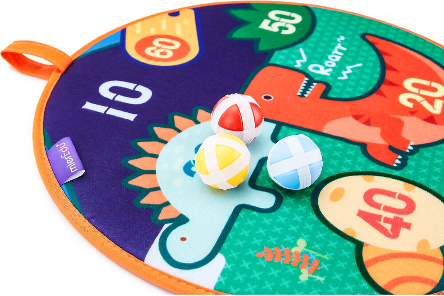 The Mieredu – Dartboard Game – Dino World is a beautiful soft fibre dartboard that offers hours of fun play. This dartboard allows kids to practice their shot with six balls and to learn counting and numbers. It can be hung on the wall or door, making it a perfect addition for team play or a party.