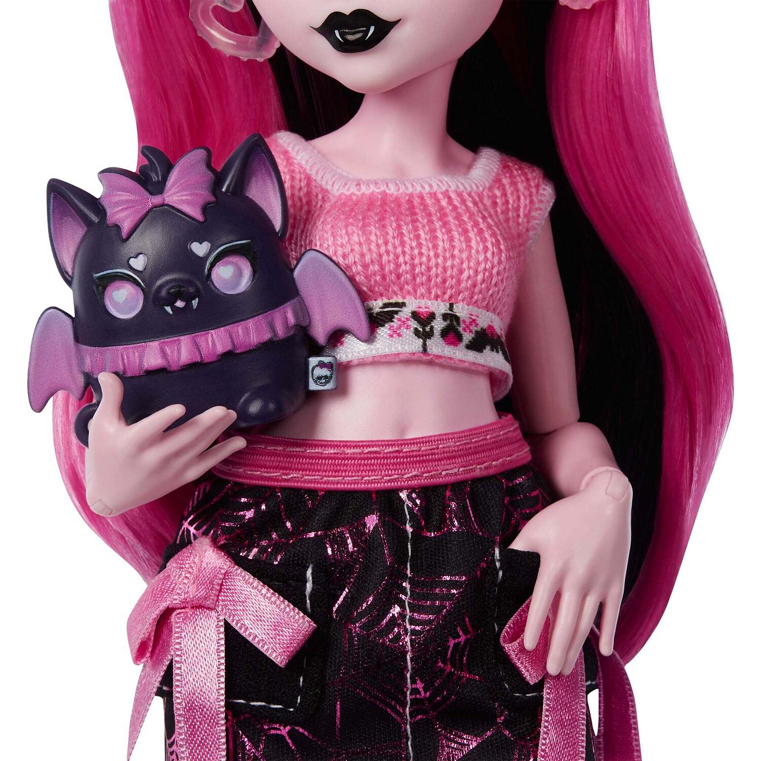 - Draculaura doll is ready for some self-scare time in her comfy knit top and skirt! Open mystery bags packed with fangtastic surprises to discover how this vampire likes to unwind.