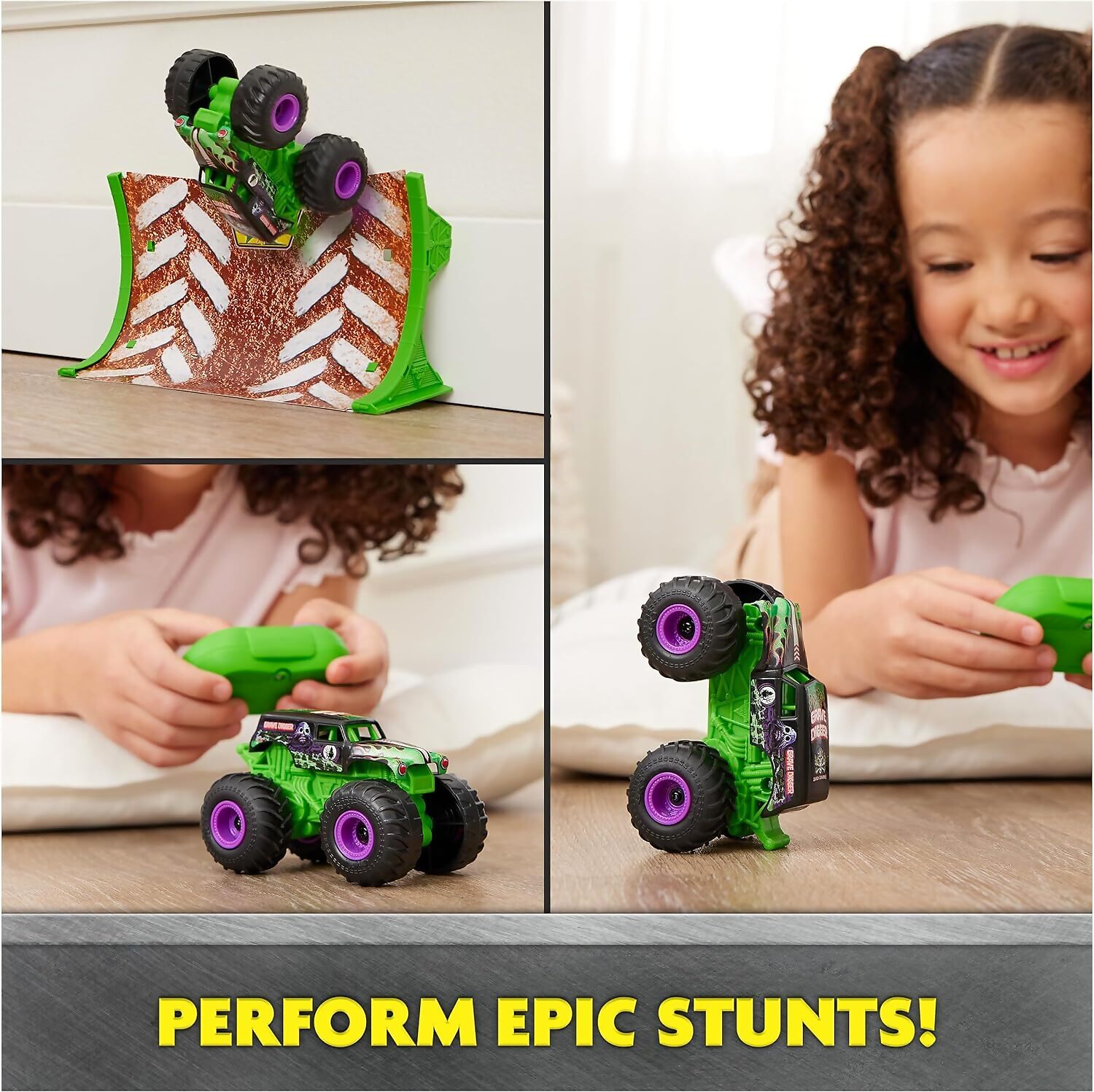 - INCLUDES RAMP: Turn any space into a Monster Jam arena with the included ramp. Perform epic stunts and back flips with your Monster Jam truck. Featuring authentic graphics, oversized tires, and highly realistic details!
