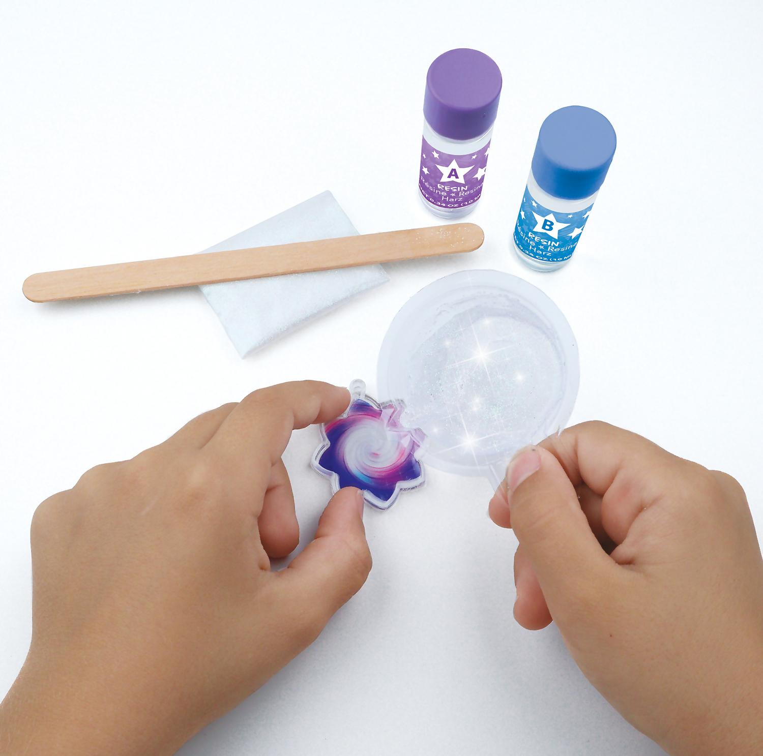 Make 8 beautiful glittering resin portal jewels! Whenever you need a moment of rest, close your eyes and hold them tightly in your hands. They will allow you to enter the soothing world of Nebulous Stars!