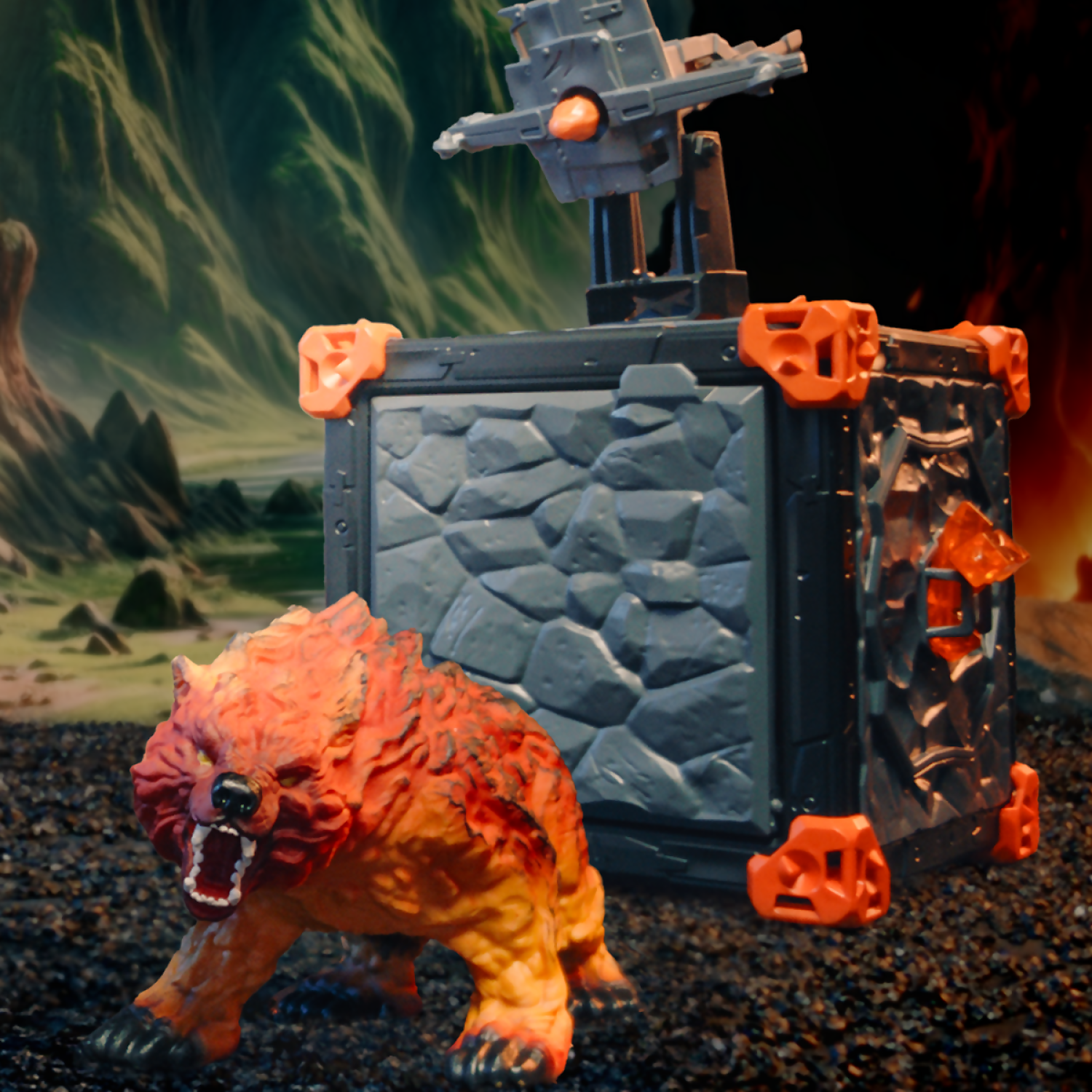 The Lava Bear keeps a watchful eye on the BattleCave. This is where its precious Lava World Crystal is stored. Anyone who wants to steal it must first get past the fierce Lava Bear, with its fire-like fur and razor-sharp fangs. Warning! He’s poised to leap and ready to pounce on any attacker. The Lava Bear is backed up by the shooting range on the BattleCave’s roof.