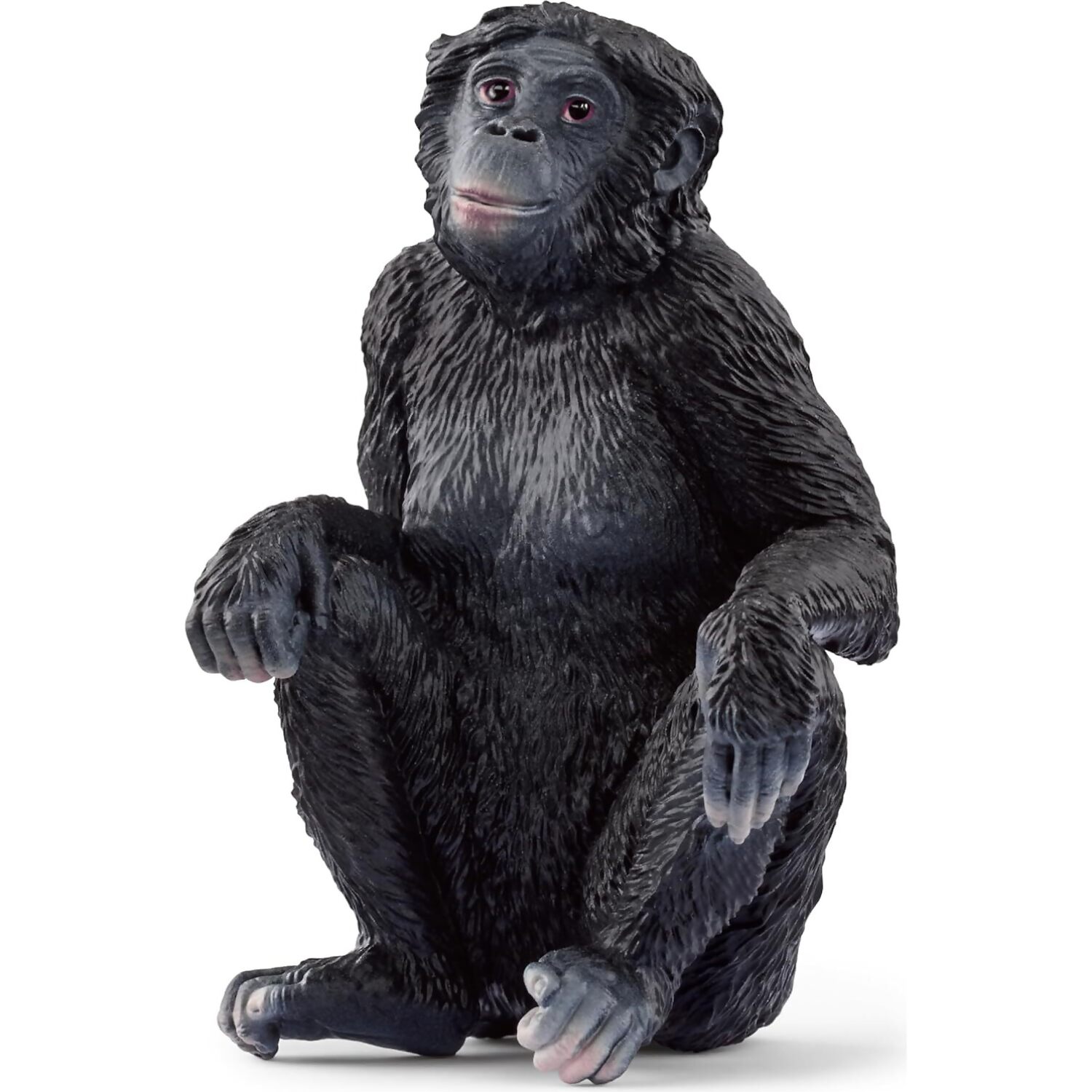 The Schleich – Bonobo Female figurine captures the essence of this intelligent and social primate. Hand-painted with intricate details, it showcases the bonobo’s distinctive features, including light lips and a middle parting.