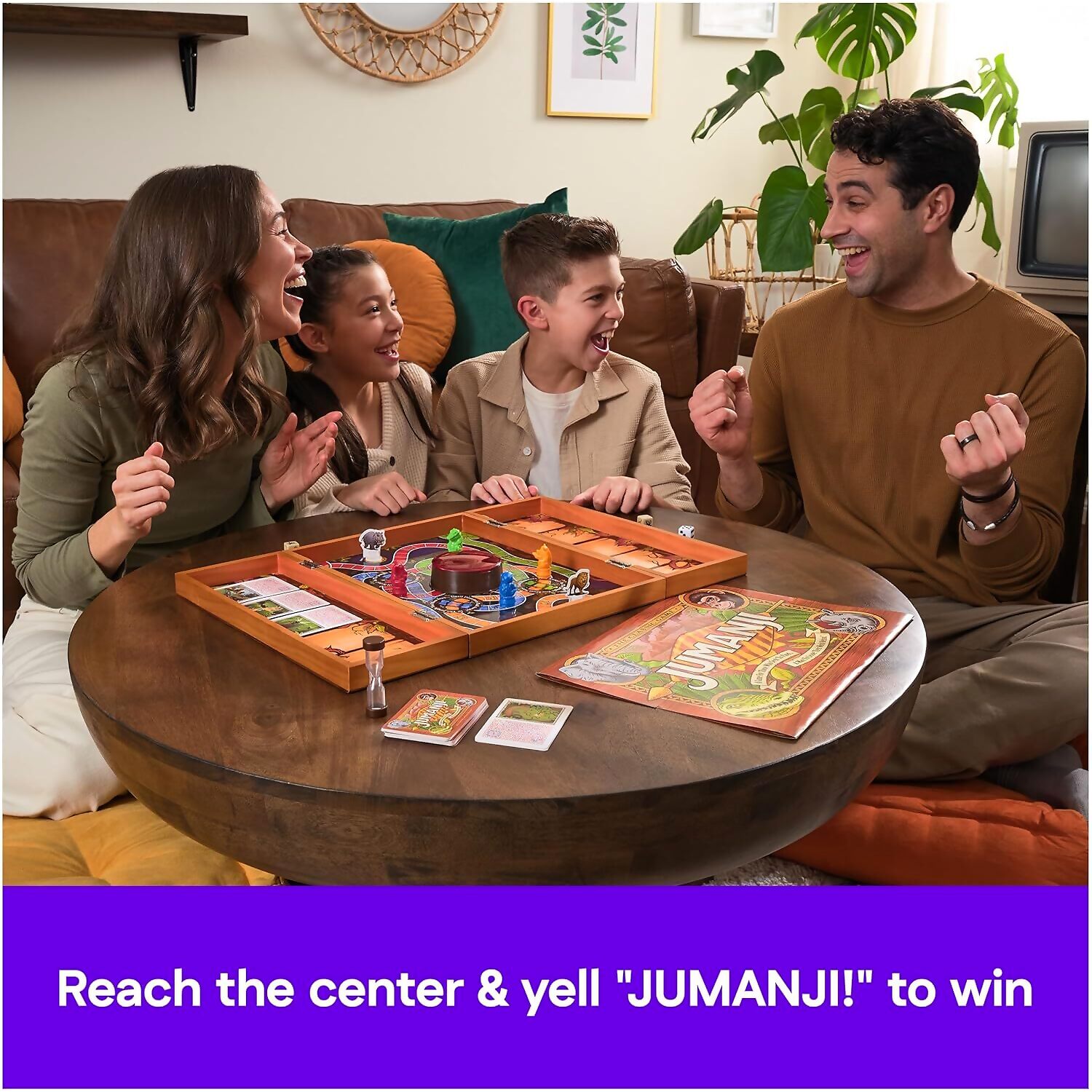 From snapping crocodiles to stealthy lions and angry elephants, the jungle is teeming with peril. Players must work together to navigate the board, solve riddles, and avoid disaster. The first to reach the centre and declare Jumanji! wins—but survival is essential, making teamwork a necessity in this thrilling game.