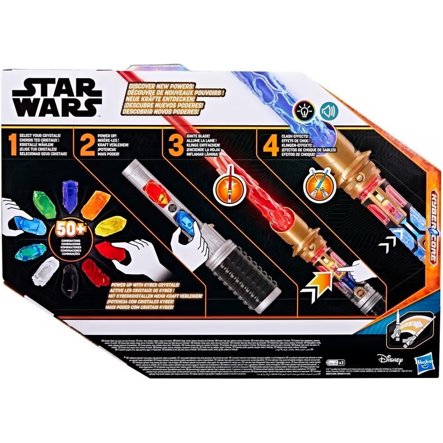 - POWER CRYSTAL LIGHTSABER™: This officially licensed Star Wars™ Lightsaber features 7 different blade colors, sound effects, and for the first time — crystals that can be swapped in and out of the hilt