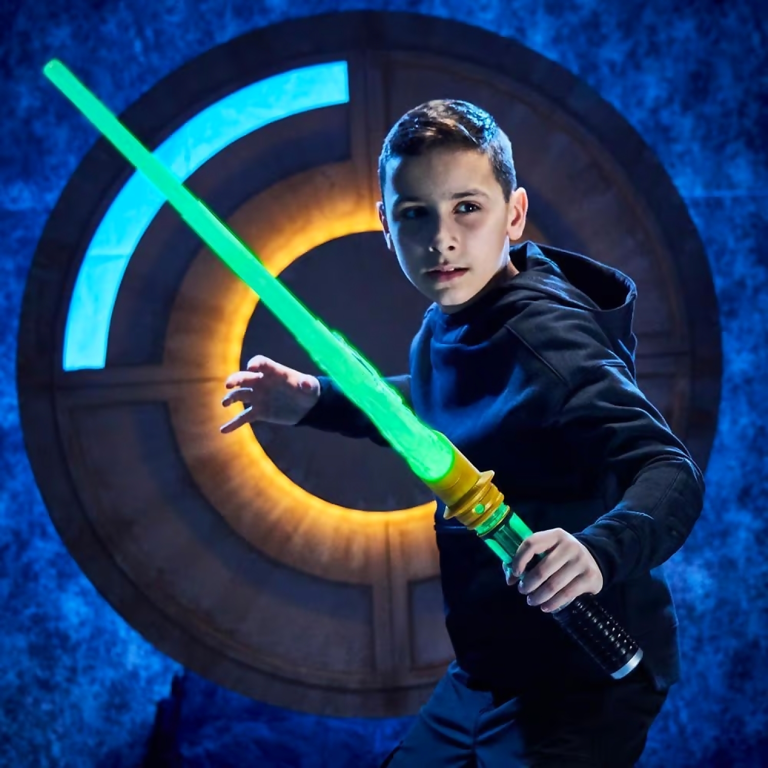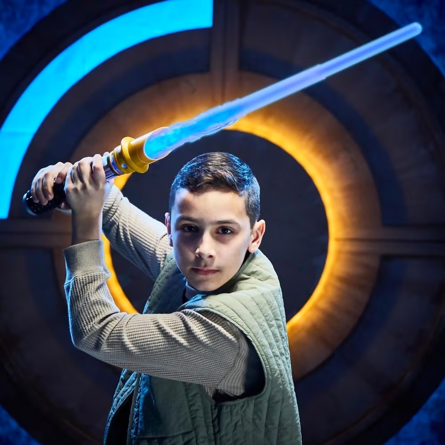 This kids Lightsaber features entertainment-inspired design, an extendable light-up blade that flicks open, and sound effects inspired by the Star Wars galaxy. Use the included blade, Force blast effect, cap, cover, and electronic core to create an epic customizable Lightsaber and channel characters like Darth Vader, Yoda, and Luke Skywalker!