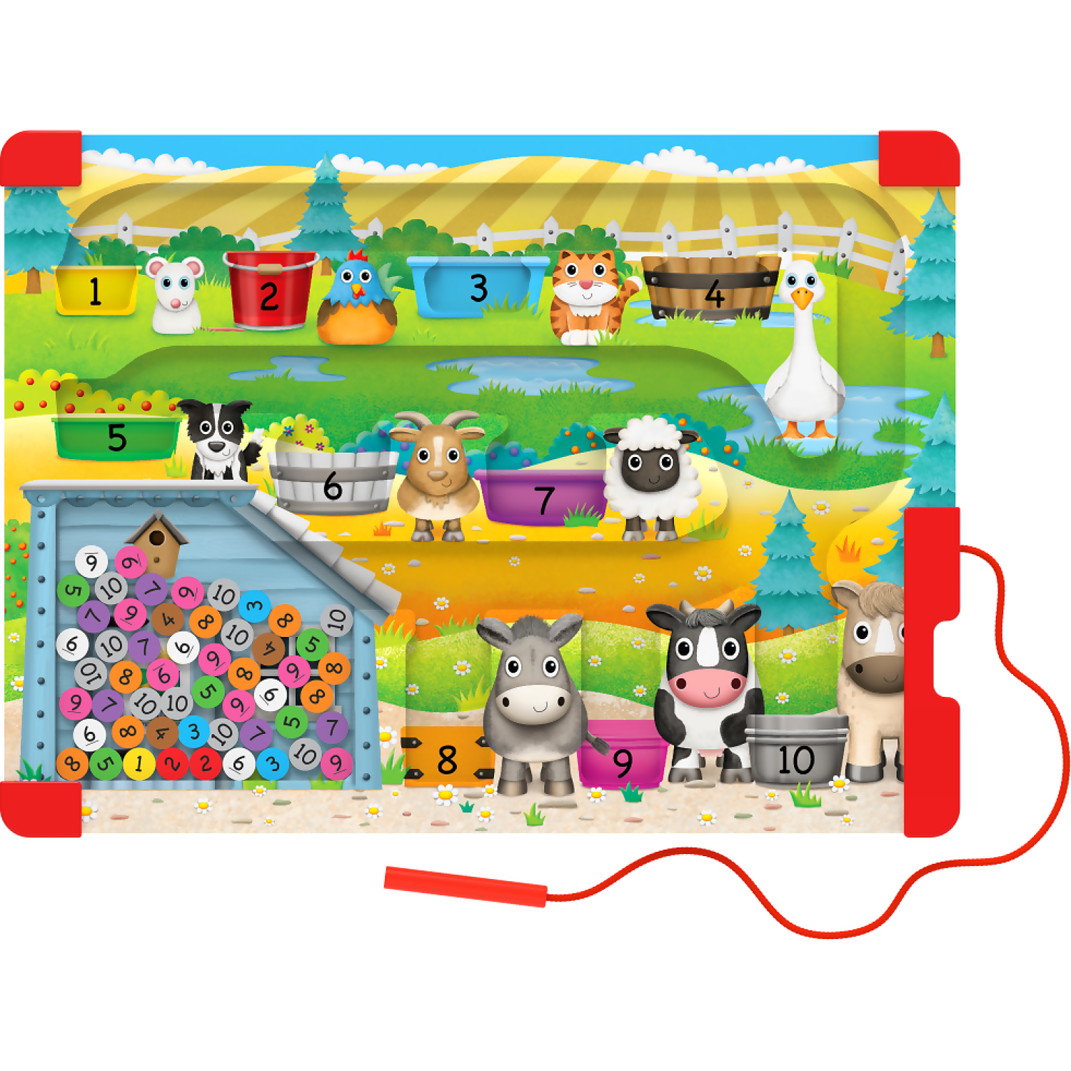 The Learning Journey – Sort & Learn Magnetic Puzzle Counting is a bright and engaging farm-themed tray puzzle designed to introduce children to early counting skills. Using the magnetic pen, children guide each numbered piece into its matching bin, reinforcing number recognition from 1 to 10. Once the puzzle is complete, a simple flip reveals a barn-themed collection area where the pieces tumble back, ready for another round of play.