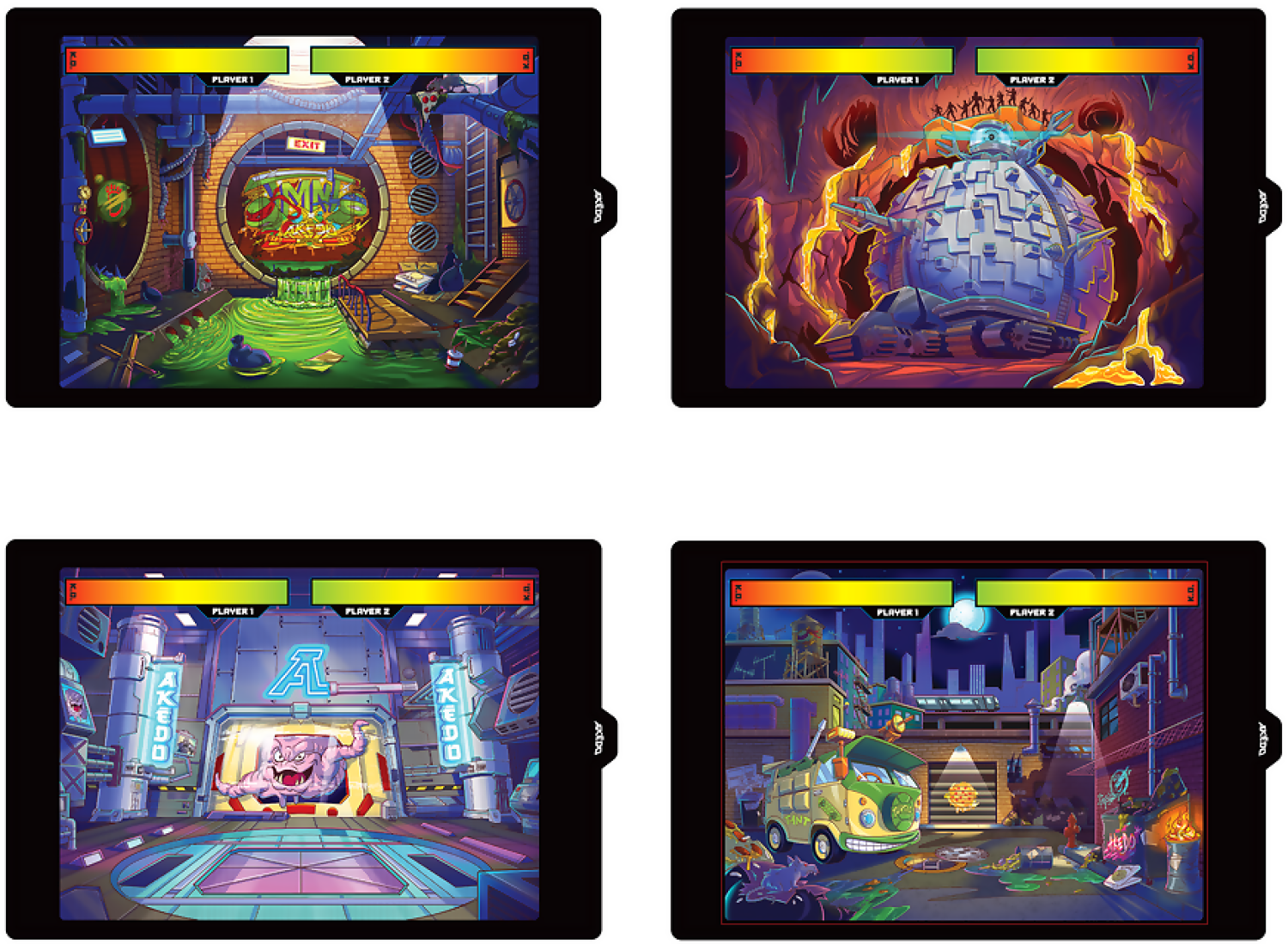 The Legends of Akedo Teenage Mutant Ninja Turtles Battle Arena comes 4 different, interchangeable TMNT backgrounds! Kids can quickly and easily slide the backdrop into the arena to change their fighting backdrop!