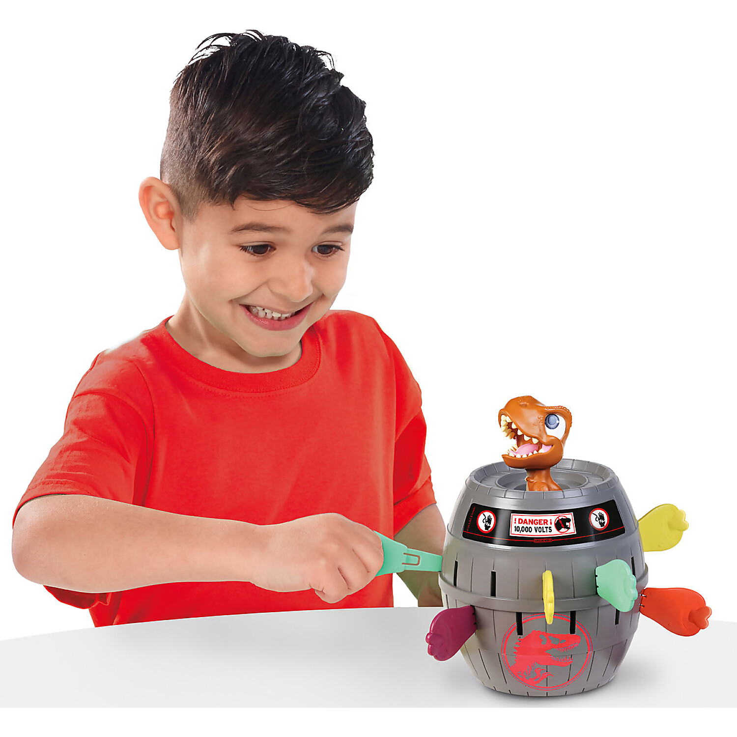 - Feel the thrill of a visit to Jurassic World! Pop Up T-Rex is the nerve jangling kids’ game that’s full of surprises