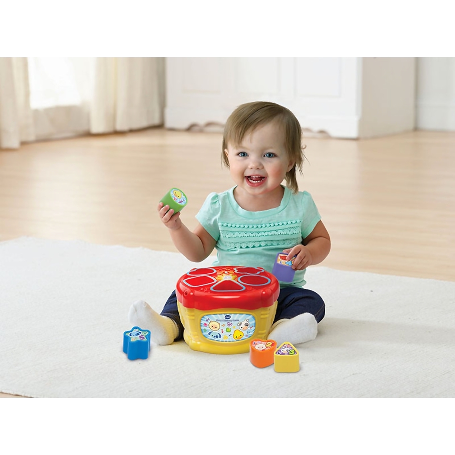 Encourage early learning through rhythm and play with the VTech Sort & Discover Drum Set. This interactive drum features five colourful shape blocks that introduce toddlers to shapes, numbers, and animals as they match and insert each piece. Tapping the drum lid activates cheerful drum sounds, sing-along songs, and engaging phrases that spark imaginative play.