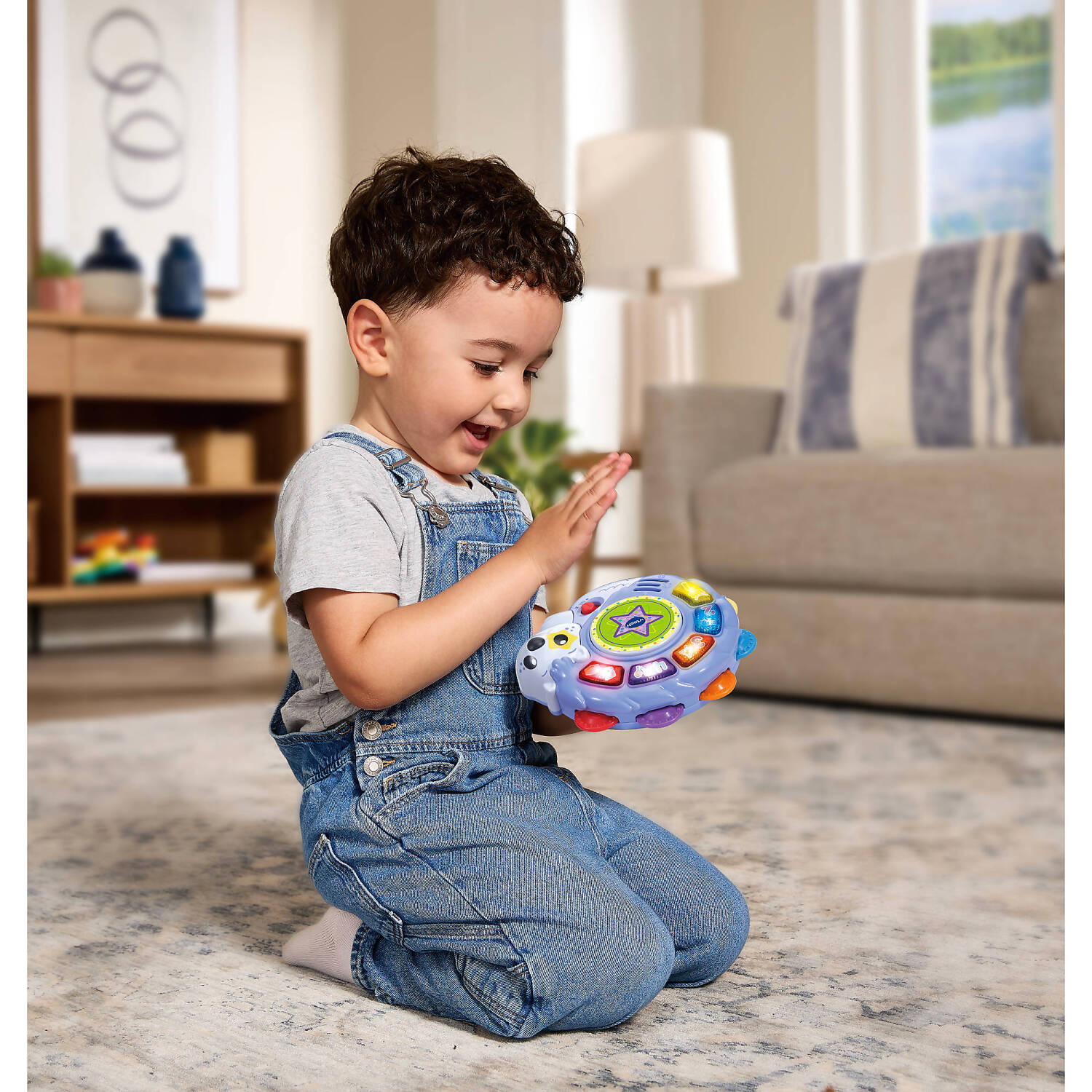 Little paws get big applause when they rattle and rock with this VTech Tapping Tunes Tambourine. Shake to jangle the jingles or press the colourful light-up buttons to explore numbers, colours and instruments. Play along with the included song and melodies by choosing the drum, xylophone, triangle, maracas and tambourine sound effects. Let’s dance! Start a game of follow-the-hedgehog and keep moving until the music stops, then freeze. You’re on a roll!