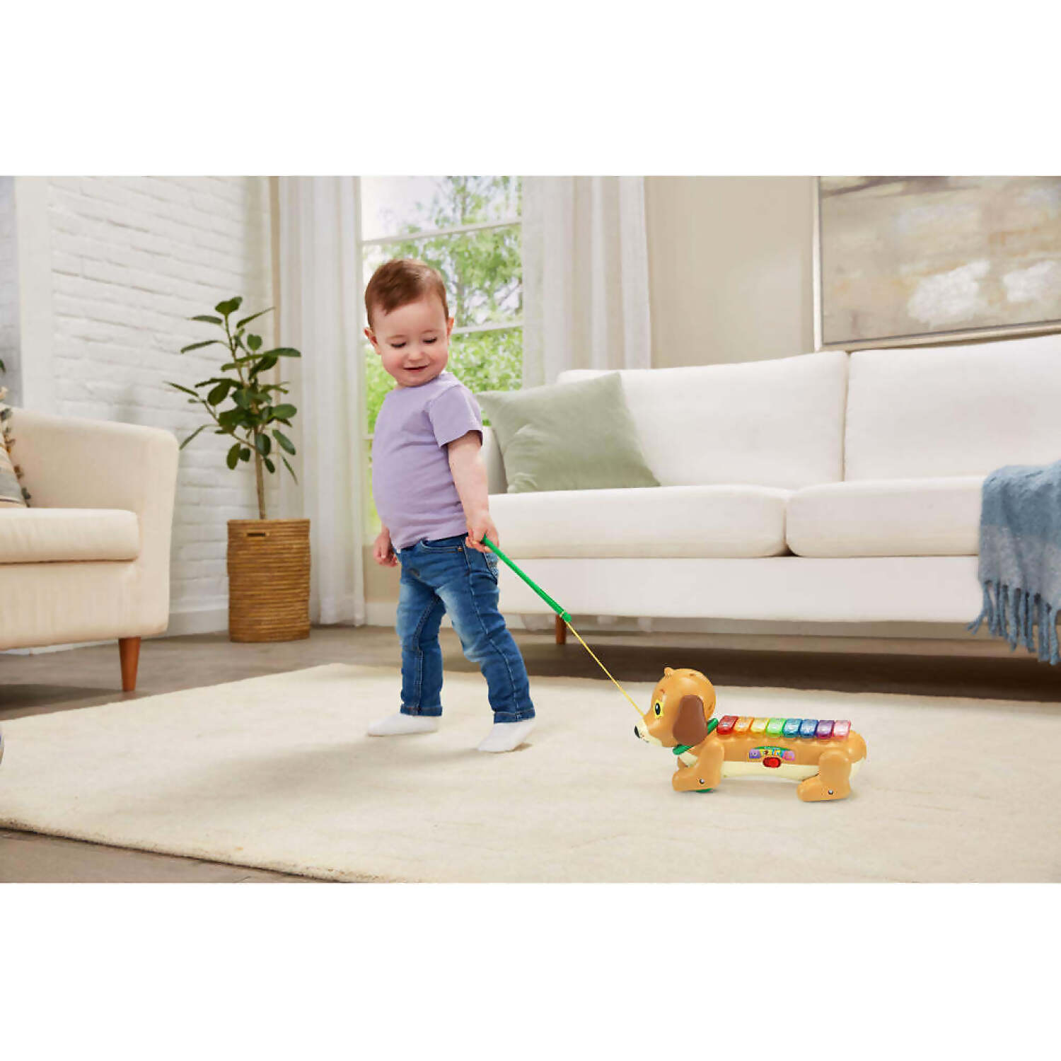 - Grab the mallet and pull the pup along to continue the music as he walks