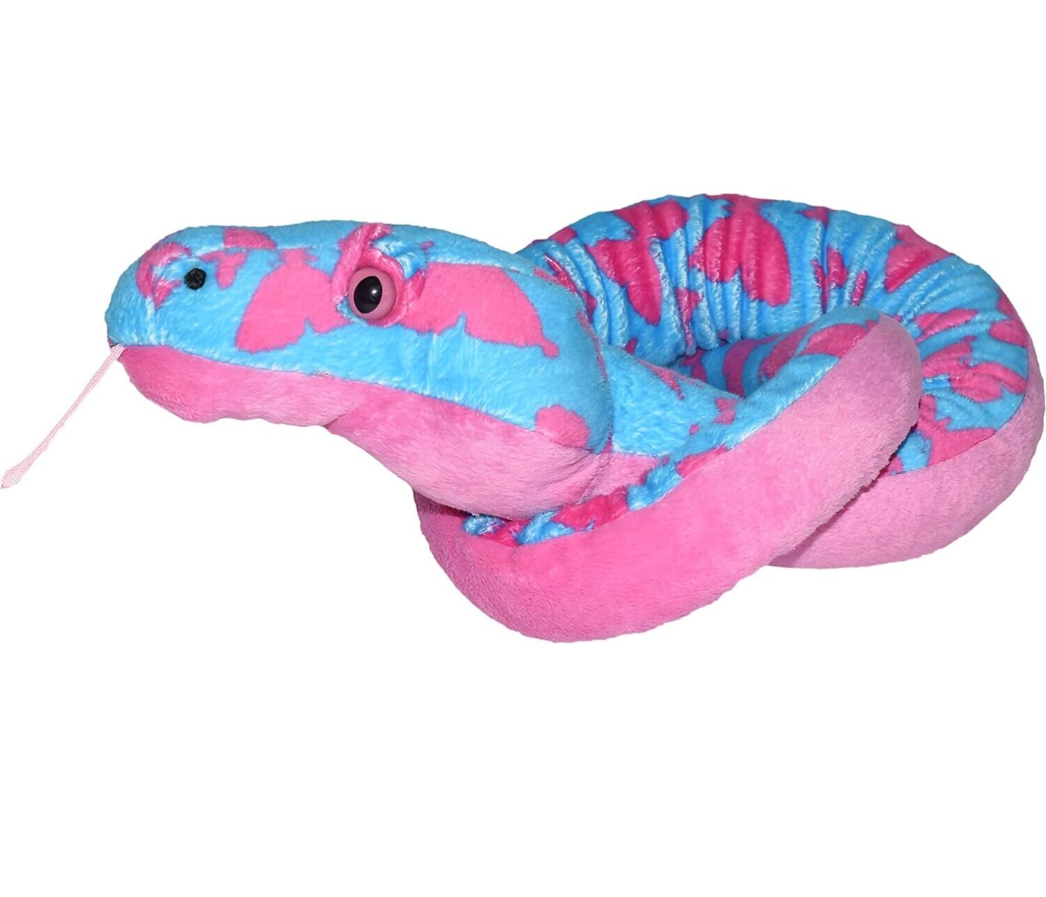 This plush snake is unique in its vibrant colours and glittery butterfly pattern. It’s not just a toy, but also a great decorative piece for your child’s room. The snake’s large head adds to its charm, promising to give your child a great time. Despite its size, the plush fabric design makes it squeezable and huggable.