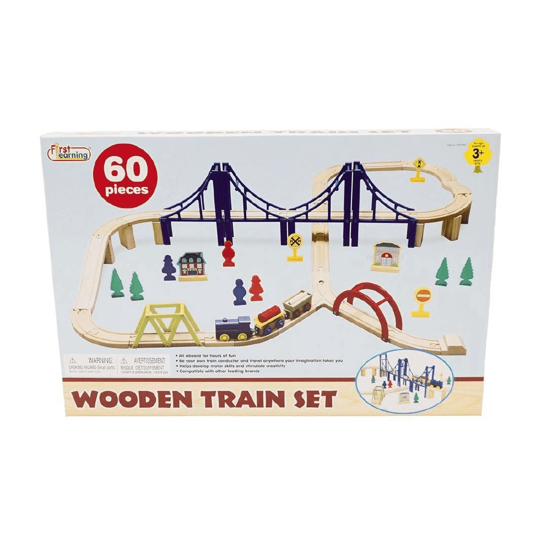 All aboard for hours of fun with this fantastic wooden quality 60 piece train set. Build and design your own track set the scene and away your child’s imagination will go.